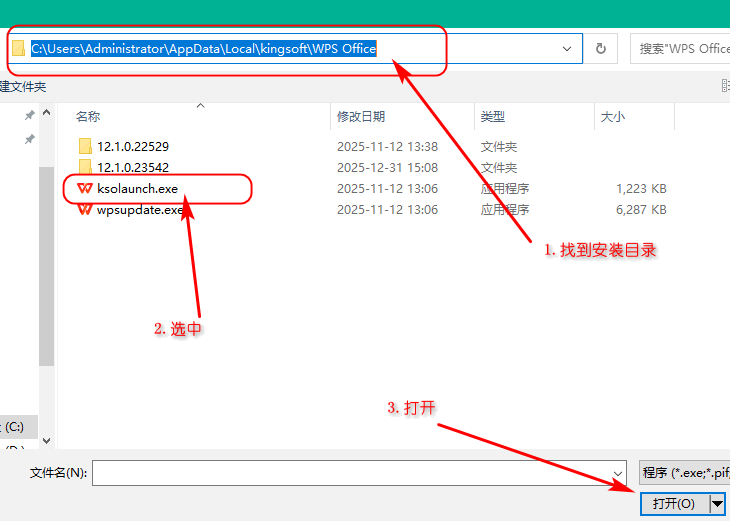* 右击 WPS Office 图标 -》打开文件所在位子
