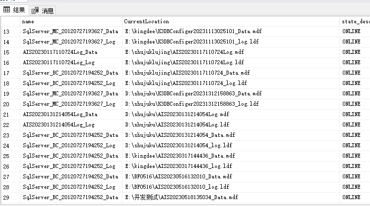 SELECT name, physical_name AS CurrentLocation, state_desc